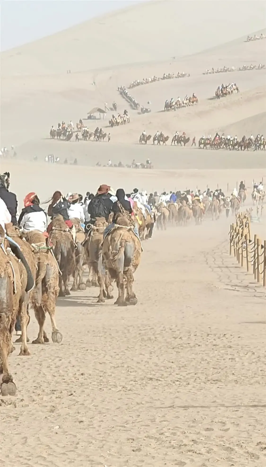 对此,有网友打趣道:“都说西出阳关无故人,怎么来到沙漠全是人”“游客比沙子还多”。